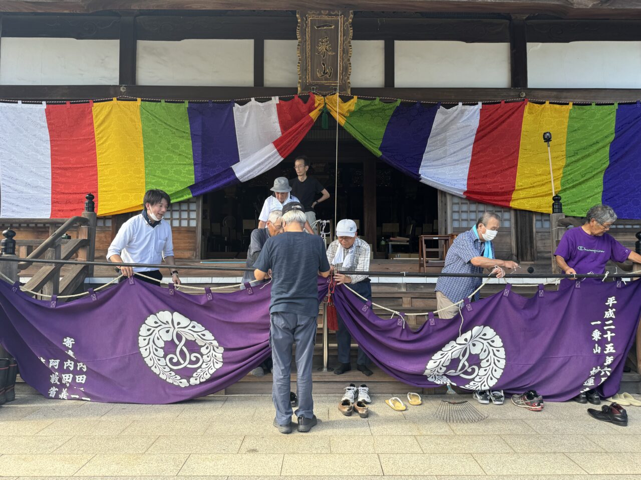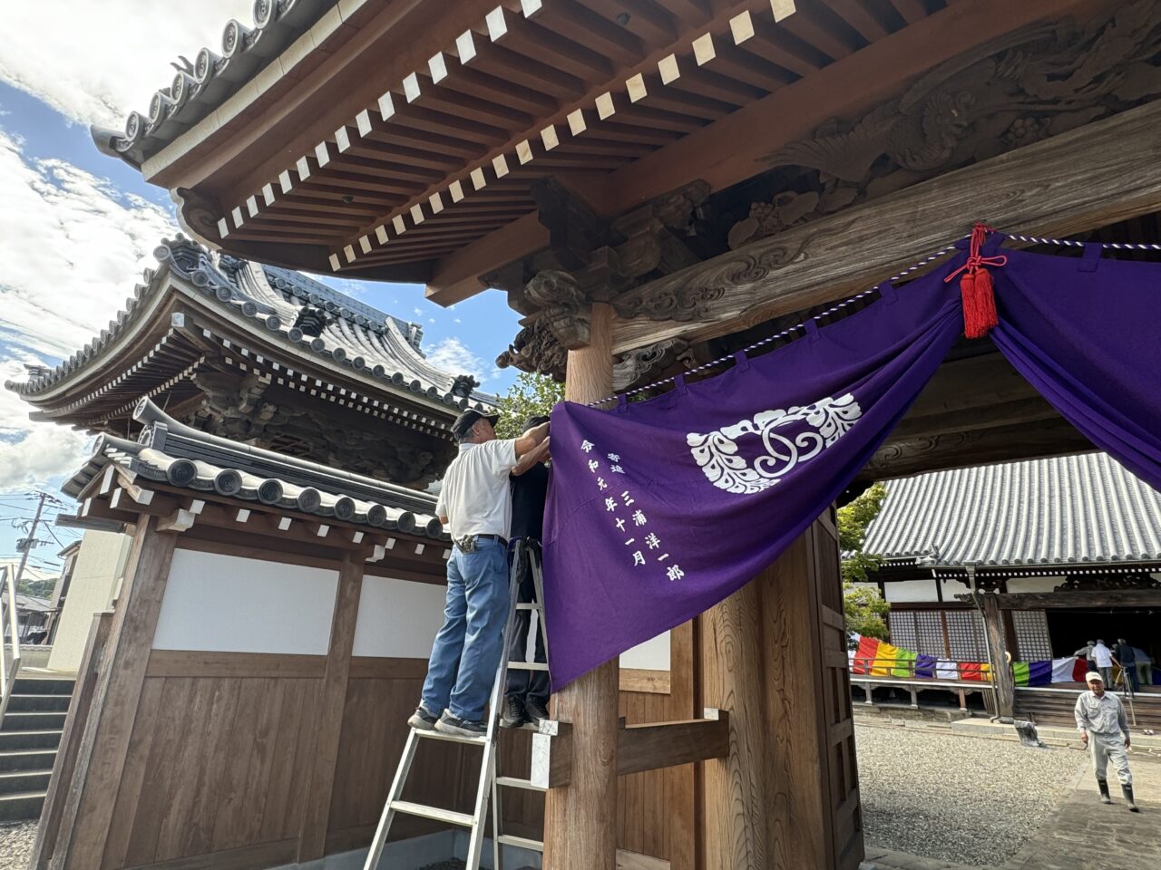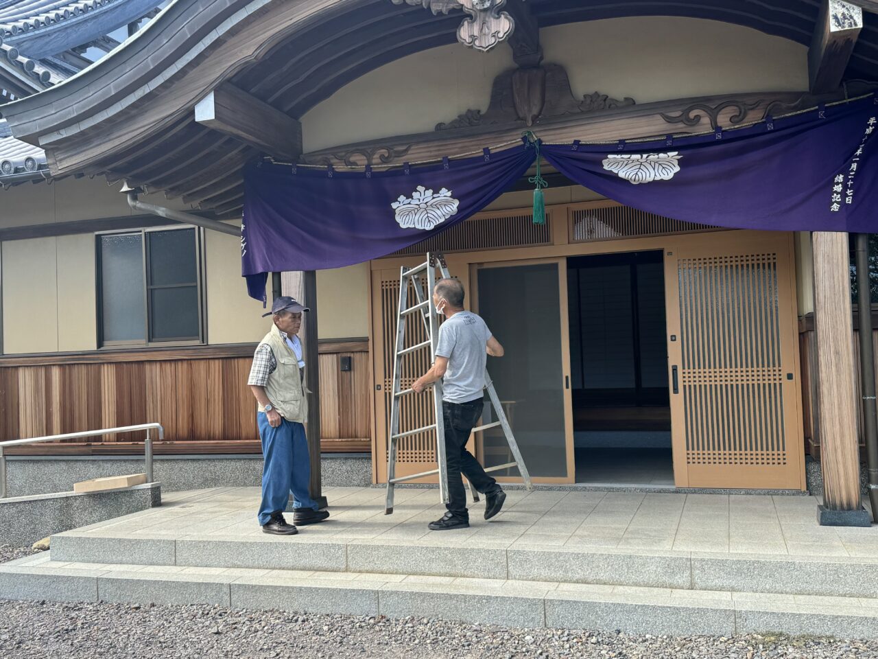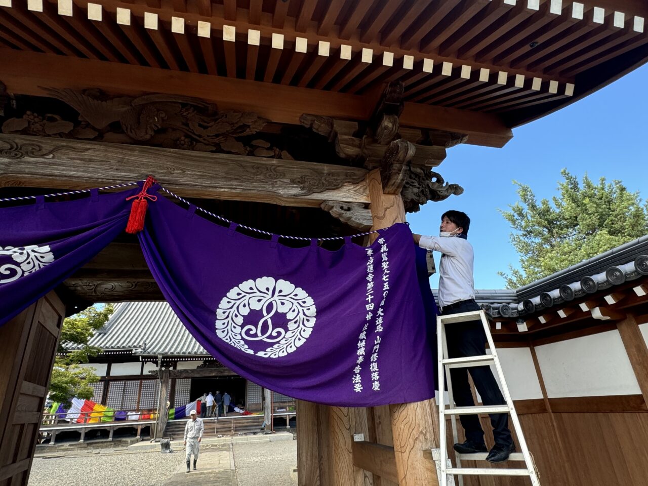前日の18日には仏教壮年会の皆さんが集まって、幕張や旗立て、それに庭木の整備までくださいました。