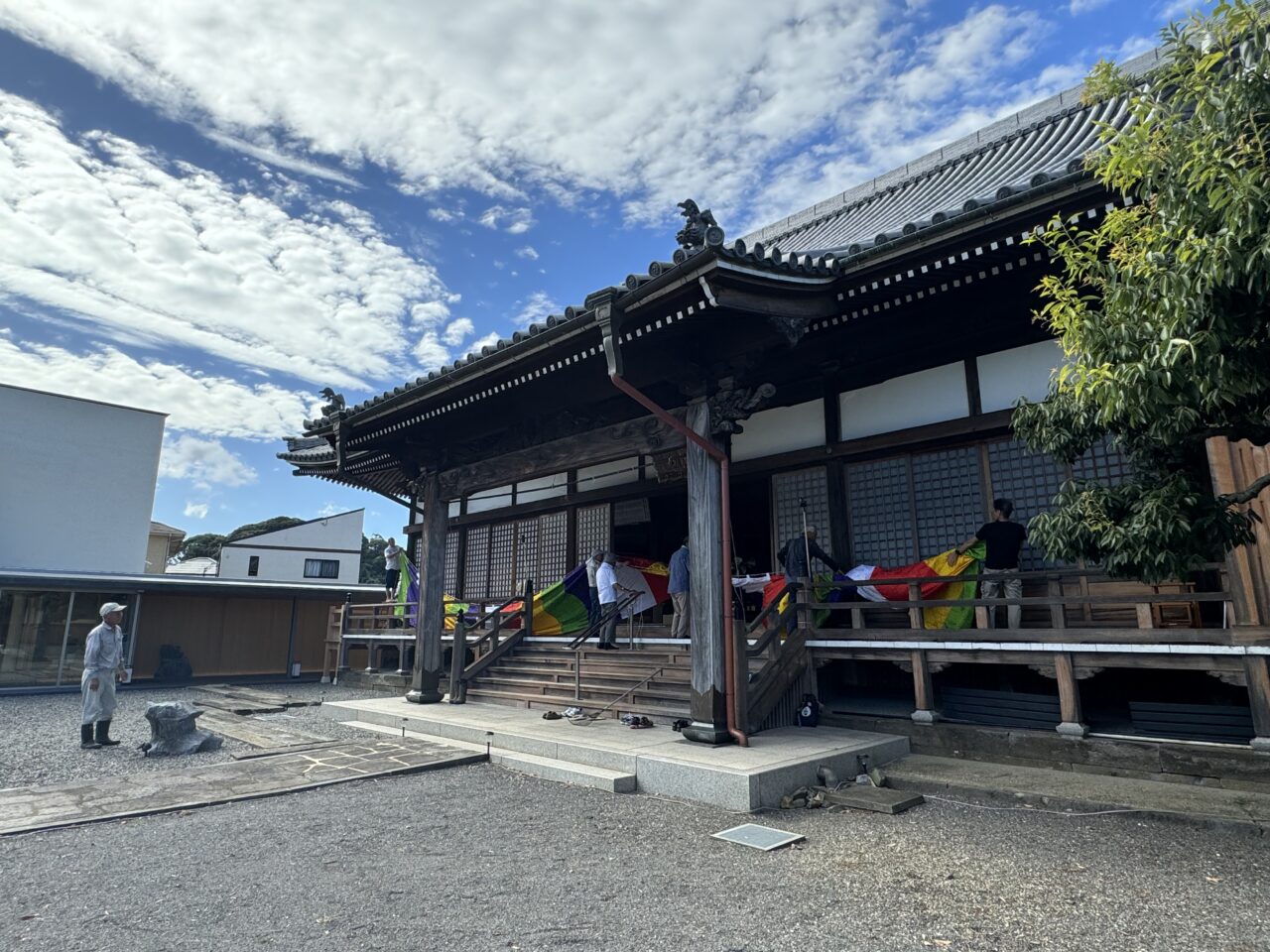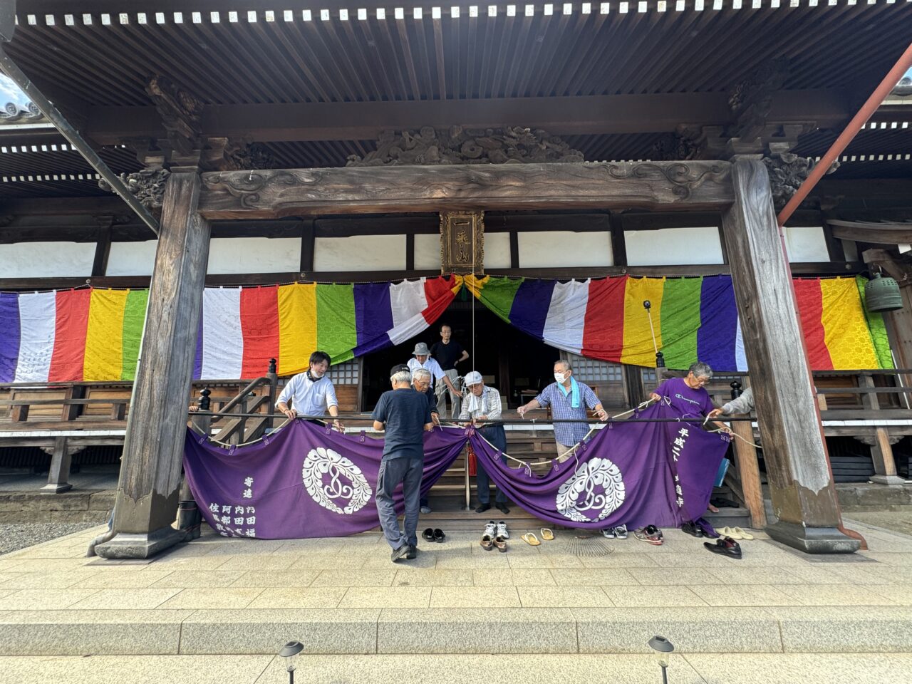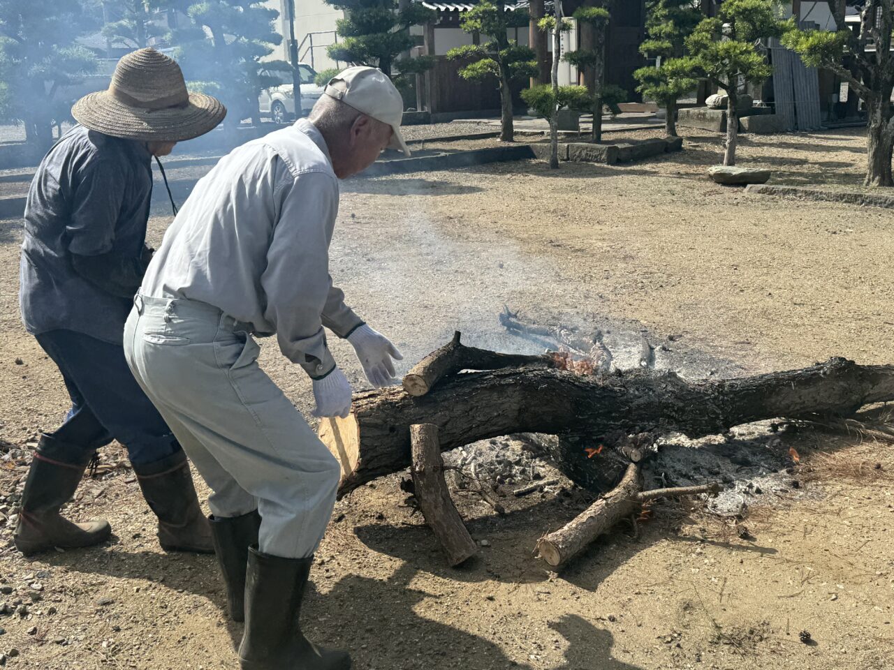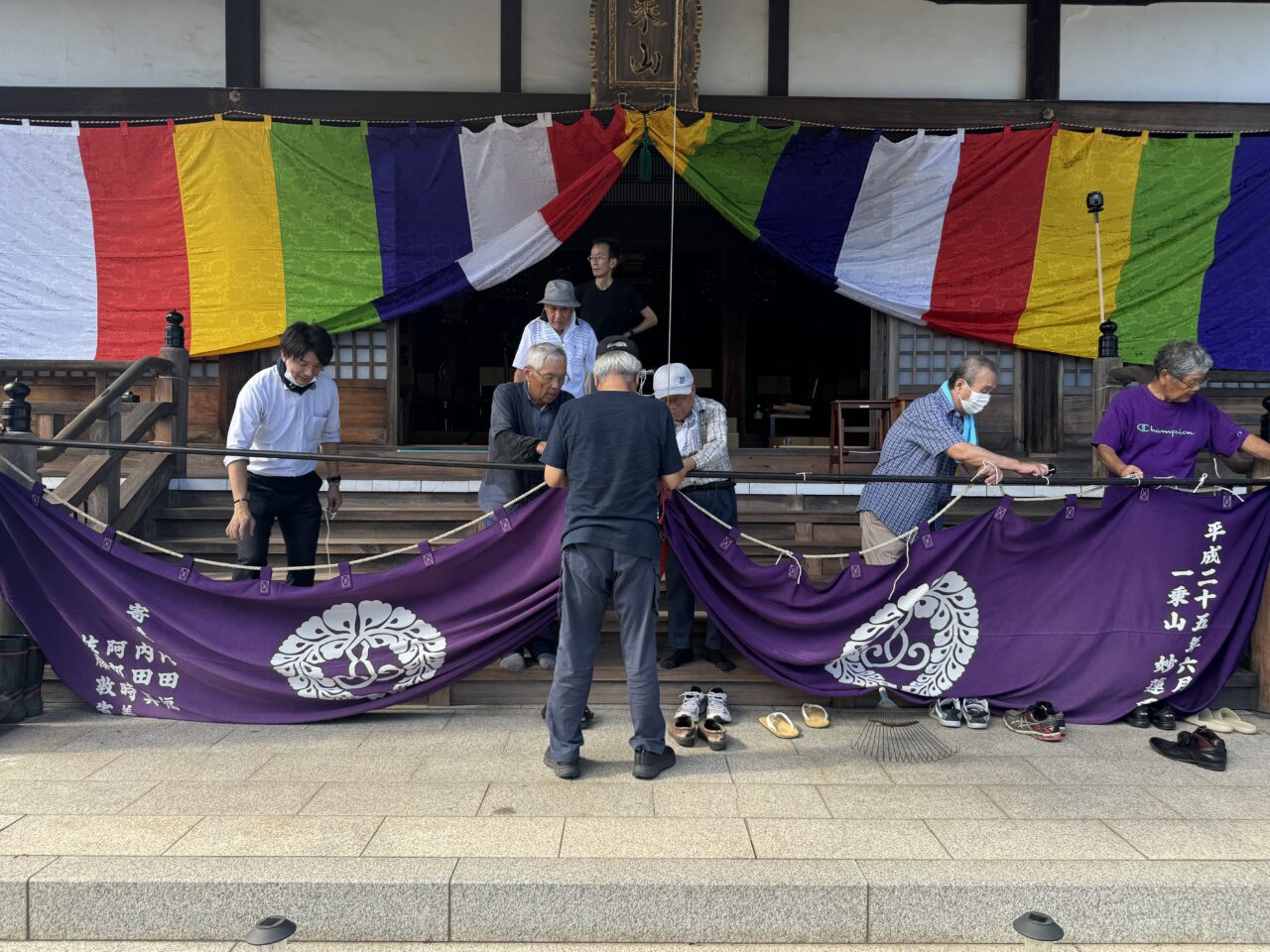 前日の18日には仏教壮年会の皆さんが集まって、幕張や旗立て、それに庭木の整備までくださいました。