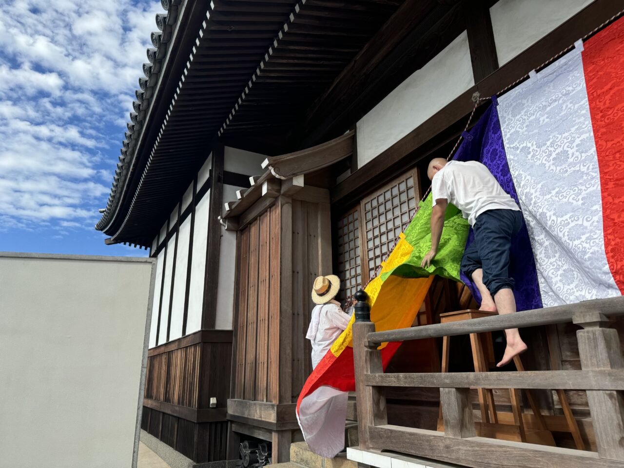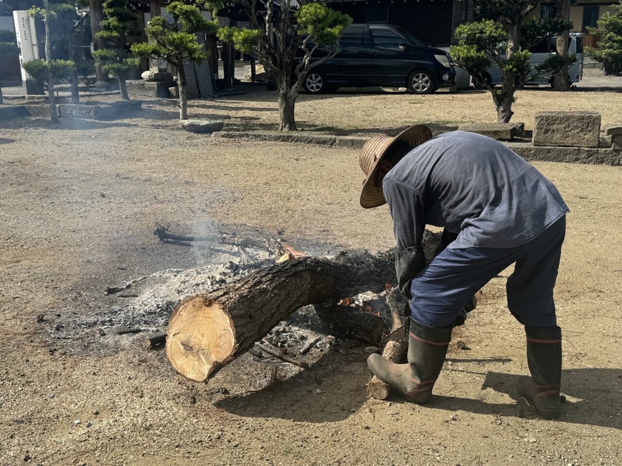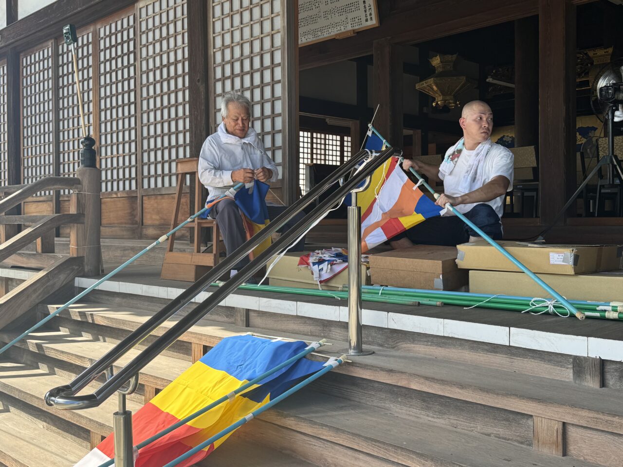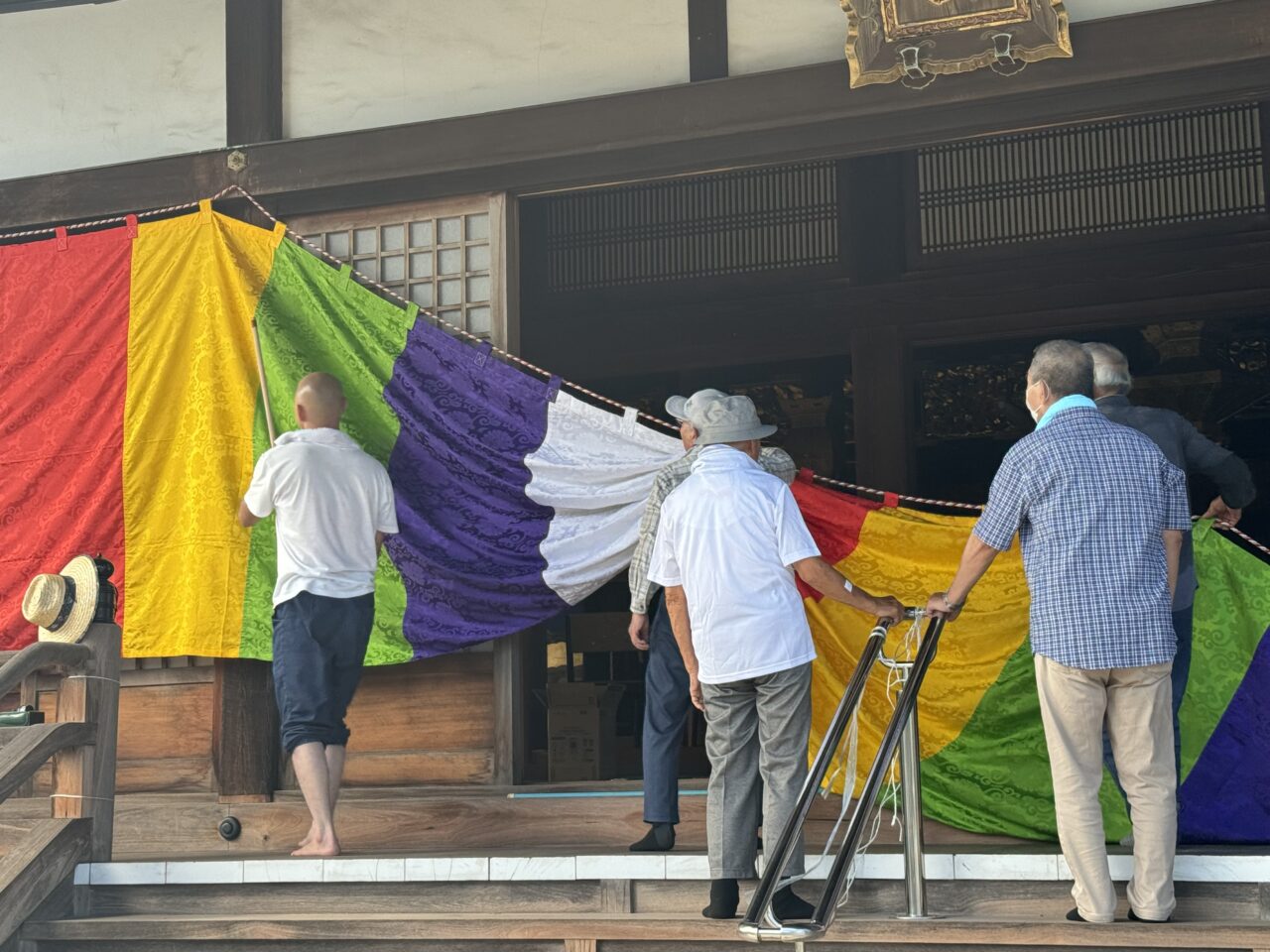 前日の18日には仏教壮年会の皆さんが集まって、幕張や旗立て、それに庭木の整備までくださいました。