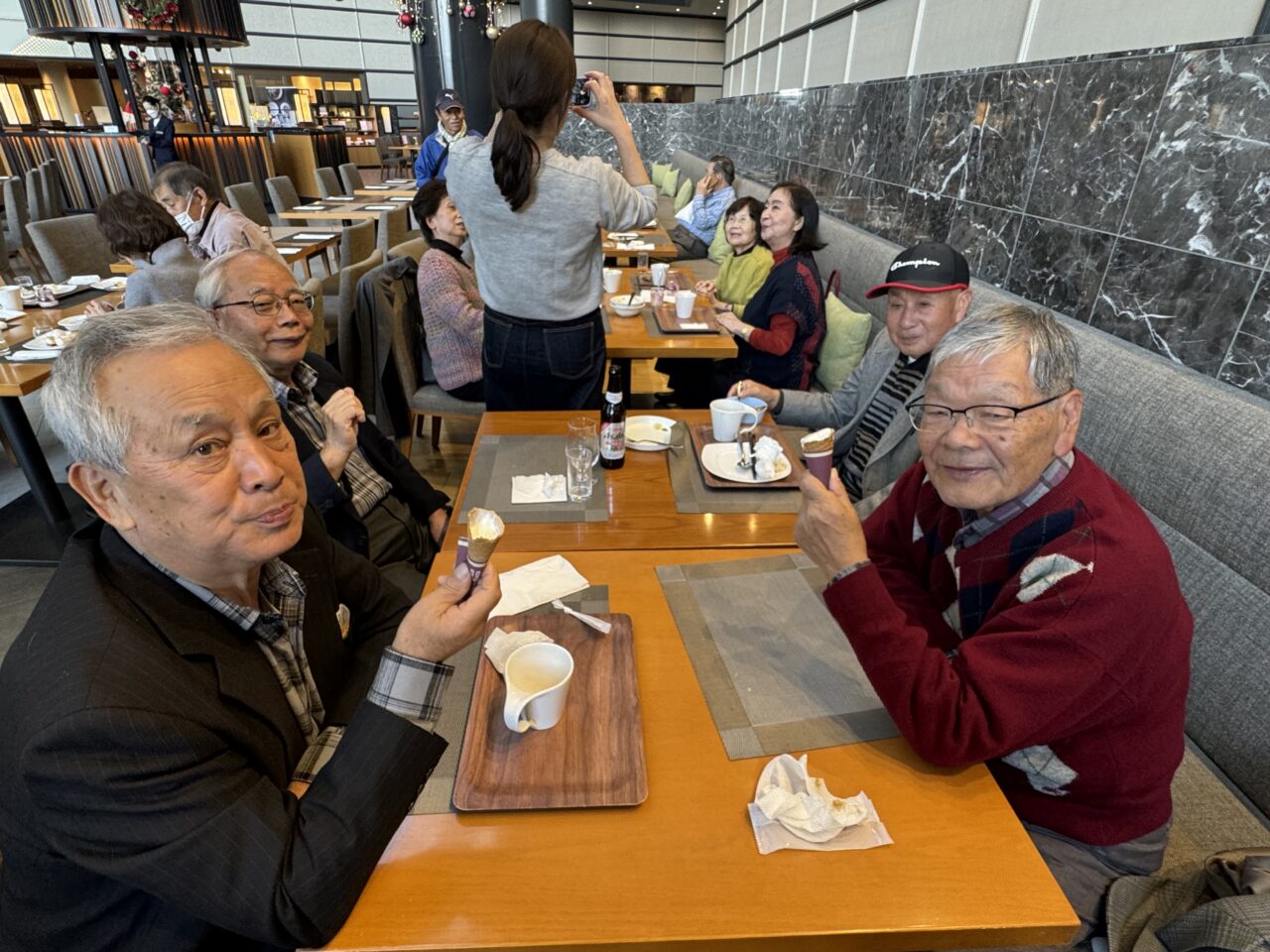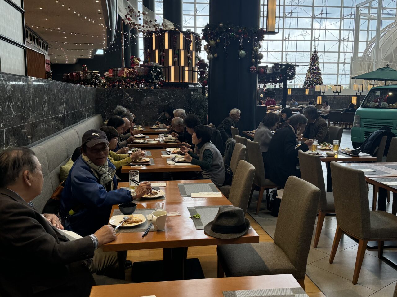 昼食はヒルトン福岡シーホークで豪華ビュッフェ。皆さんと美味しく楽しく頂きました。