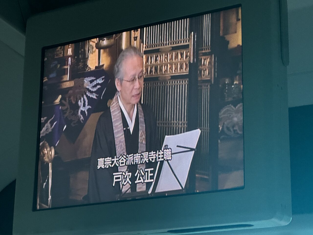 帰りのバス中では、御正忌報恩講が近いということもあり『御伝鈔』のDVDを観ました。
